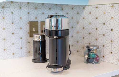 The apartment features a newly renovated, fully equipped and fully applianced kitchen—perfect for cooking meals at home. For your morning routine, we provide both a Nespresso machine, a drip coffee maker with a selection of pods and filters to get you started. We also provide a selection of teas and hot water kettle.