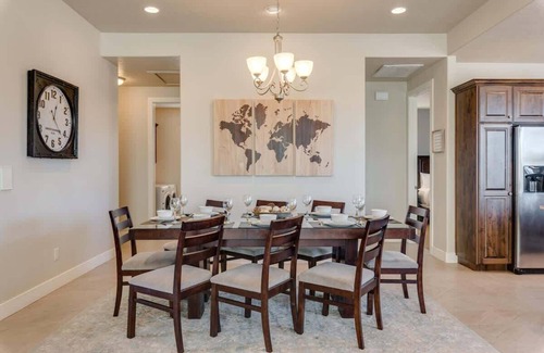 A home known for its gorgeous mountain views observed from the back patio and named after Utah's famous Arches National Park. Located on a corner lot right across the street from the clubhouse and pools, Arches has one of the best locations in the village! Step inside to find a large central living space combining the bright and clean living room, dining room, and kitchen. Easily be together while cooking, watching a game, or just visiting with one another without feeling cramped. A favorite feature of this home is it's covered patio where you can relax, read a book, and enjoy the one-of-a-kind serene red mountain views. We highly recommend enjoying a sunrise or sunset from the cozy patio. Other features include a gas fireplace, stocked kitchen (appliances & utensils), 3 comfortable bedrooms, an Xbox, and more entertainment! Perfect accommodations for families, small groups, sports teams and other events in southern Utah.