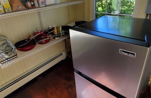 Spacious, open floor plan on the first floor provides ample space for up to 12 people, without feeling cramped. All rooms have window air conditioning. The grounds are flat and mostly lawn style. There's plenty of room to play for the little ones and entertaining for adults. Feel free to set up lawn games or a nice quiet picnic.