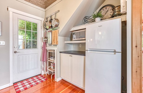 Welcoming atmospheres await in both of the bedrooms, furnished with high-quality linens and soft color palettes. The bathrooms are just as impressive, fully updated, and perfect for practicing your daily routines. Partial air-conditioning and private washer/dryer access round out the cottage's amenities.