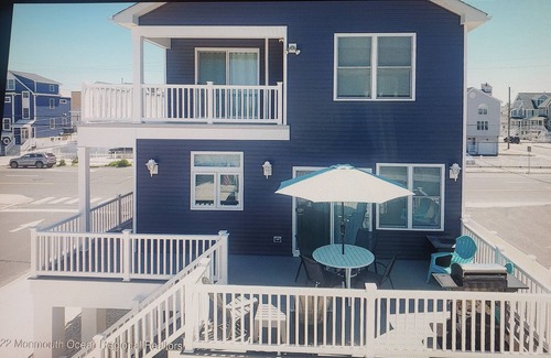 Fully furnished newly constructed 4 bedroom, 3 bath house on corner lot. One block from the ocean. 2 Bedrooms are queen size, one bedroom has two full size beds and the master bedroom is king size. Master bedroom has sliders to your own private deck with views of the ocean and beautiful sunsets on the Bay. Washer/Dryer and stainless steel appliances. 6 beach badges, central air, cable tv, Wifi, and outdoor barbecue. Please note that although we are pet friendly, we can only accept dogs that are hypoallergenic and do not shed. We do not accept cats, highly allergic.