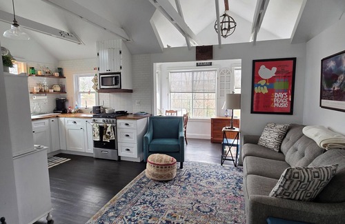 Escape to a tranquil one-bedroom cottage nestled in the heart of the Catskills, ideal for long weekends or extended stays. This bright and airy space is thoughtfully set up for remote work, with plenty of natural light to keep you inspired. Enjoy your lunch break with a walk around the mountain, or unwind after a productive day by listening to the soothing bird songs and gazing at the stars.