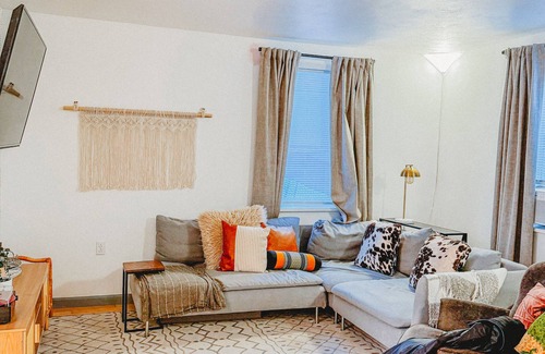 Step into a cozy, boho-inspired retreat in the heart of Oswego! This stylish 3-bedroom apartment features a spacious sectional, 1 king bed, and 2 queen beds, making it perfect for families or groups of friends. Thoughtfully designed for comfort, the space includes AC, WiFi, and a dedicated in-house laundry room, so you can relax and unwind with ease.