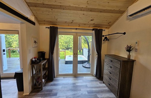 This cozy cabin is freshly renovated. The bedroom is outfitted with a queen bed, dresser, coffee station and a bar to hang a few clothes on. The ductless heating and AC will keep you comfortable no matter what season you are visiting. In the main room there is a tv, a few books & games, high speed fiber internet for video streaming or work.