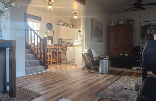 Romantic getaway or rustic family adventure. You choose ♡ home has washer, dryer, 8 beds with linens provided. All the amenities of home are loaded into this very cute vacation getaway! This home may not be huge but comfortable sleeps 8 people with room to spare. Home is in ideal location to shops, grocery stores, and Restaurants. Walking distance to downtown and coffee shops! You will love the quaintness of this unique property and hear church bells every noon on Sunday. There is no better place to relax and be close to everything needed for an ideal vacation. Want something special? We can have a fire waiting for you or strawberries and champagne. Whatever the occasion we can add a package to your rental fee to make your getaway very special!