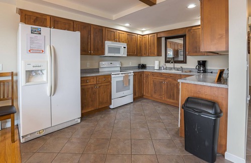 Featuring five bedrooms and three full bathrooms, as well as a sleeping loft and guest house, the sleeping configuration follows: Main house bedrooms include two bedrooms with a queen bed in each, the third bedroom with a twin bed and a set of bunk beds, and a loft with a double futon. The guesthouse features two bedrooms—one with a queen bed and the other with a twin and a set of bunk beds. Amenities include A/C, flat-screen TVs with DIRECTV, and high-speed WIFI. A fully-equipped modern kitchen and linen package comes with the rental.