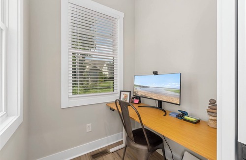 Outside, enjoy evenings by the firepit, or head to the nearby guest dock for boating. Two kayaks and three paddleboards are provided, along with life jackets. The neighborhood also offers a community pool (seasonal, not heated), fitness gear, and plenty of space to play, including ping pong, pool, and cornhole.