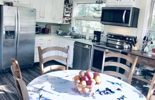 In the summer, the house is less than 1 mile from Plainfield Pond, with a kid-friendly sandy beach, or simply swim in the lake behind the house. Float down the Deerfield River which runs along the historic Mohawk Trail on our inner tubes, play croquet on the lawn, BBQ on the patio, or use the kayaks and standup paddleboard behind the house (and life-jackets). Guests are also welcome to eat from our well-tended organic vegetable garden and blueberry and raspberry bushes.