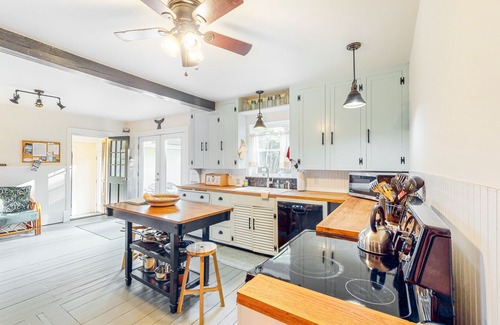 It doesn't get more classically Maine than this thoughtfully renovated 19th-century farmhouse with 270 feet of tidal shorefront on an inlet of Penobscot Bay. Built in the 1880s and lovingly remodeled in recent years, this home maintains its original charm in its beautiful wood plank floors, exposed ceiling beams, and inviting country kitchen, yet it has also been updated with such modern amenities as free WiFi and a flatscreen TV with cable service.