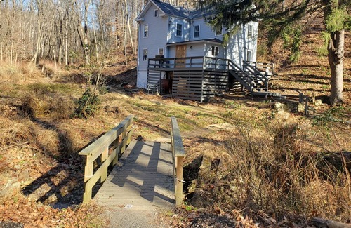 Secluded 4 bedroom 2 bath house in great condition in a great location! House sits in a secluded glen with a stream running through the yard. It is directly adjacent to the Columbia Trail (aka the Gnome Trail) that runs along the Raritan River. Enjoy the peaceful babble of the brook as you sit on the deck overlooking the huge yard. Dine at the kitchen breakfast bar or in the dining room. The basement provides storage and laundry. Smart TV, memory foam mattresses, gas grill and more!