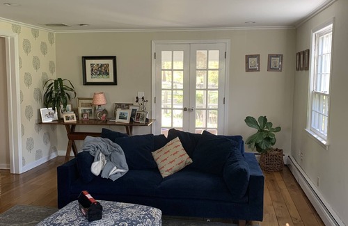 Set in 2 acres of beautiful garden with gardened swimming pool, this spacious 4 bed house is an oasis of tranquility. There is a large deck which overlooks the pool. About 5 miles to Compo Beach and lots of hiking trails nearby. 4 minute drive into Westport.