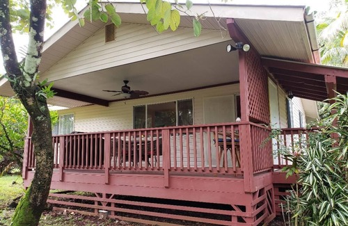 We have an amazing Hale for your tropical paradise getaway. This clean, quaint, tropical getaway is in the perfect location to explore the East side of Hawaii. Whether you enjoy Hiking, Volcano exploring, Water Falls, Snorkeling, Kayaking, or what ever you enjoy, this Hale is the perfect place to come home to relax, BBQ, and unwind from a day of exploring everything the Big Island has to offer. We offer a full kitchen, BBQ, Washer Dryer, 1 King bedroom, 1 Queen bedroom, 1 Full Bathroom with a Half Bath in the Laundry Room in the Carport. Also, mini split AC have been install in every room to keep the whole house nice and cool. We have installed an outdoor shower for your enjoyment. The property sits on a 1/4 acre of tropical plants, palms, avocados, and bananas. The house sits back from the street. It is only 7 blocks from the ocean approx. 1/4 mile. Explore the town of Pahoa with very good restaurants, a Farmer's market every Sunday, Malama Grocery Store, and Gas Station only 6 miles away. We have a minimum night stay of 3 nights, maximum stay of 14 days.